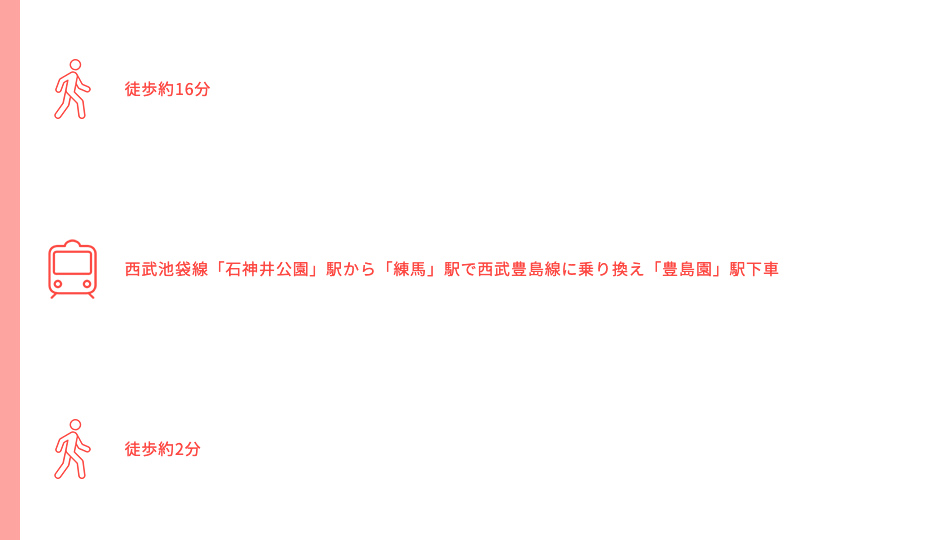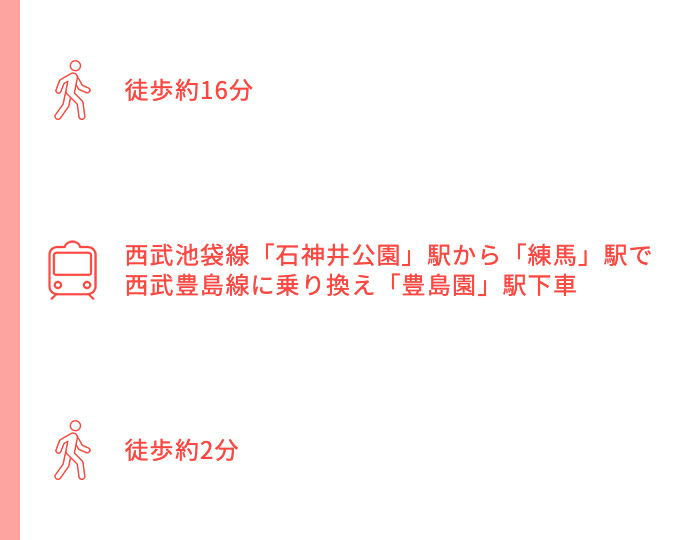 西武池袋線「大泉学園」駅からスタート➡徒歩約15分➡東映アニメーションミュージアム➡徒歩約20分➡都立石神井公園➡徒歩約1分➡練馬区立石神井公園ふるさと文化館➡徒歩約16分➡西武池袋線「石神井公園」駅から「練馬」駅で西武豊島線に乗り換え「豊島園」駅下車➡徒歩約2分➡ワーナー ブラザース スタジオツアー東京 – メイキング・オブ・ハリー・ポッター➡徒歩約2分➡豊島園 庭の湯
